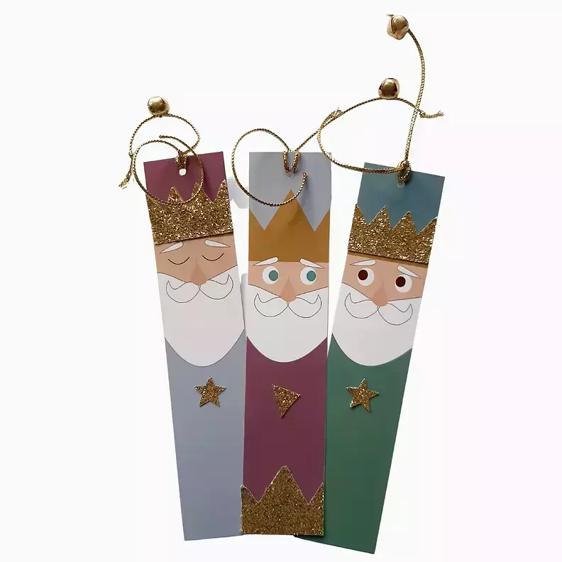* 3 Cartões / Marcadores de livros tam: 17 x 3,8cm, com detalhes em glitter e guizos.